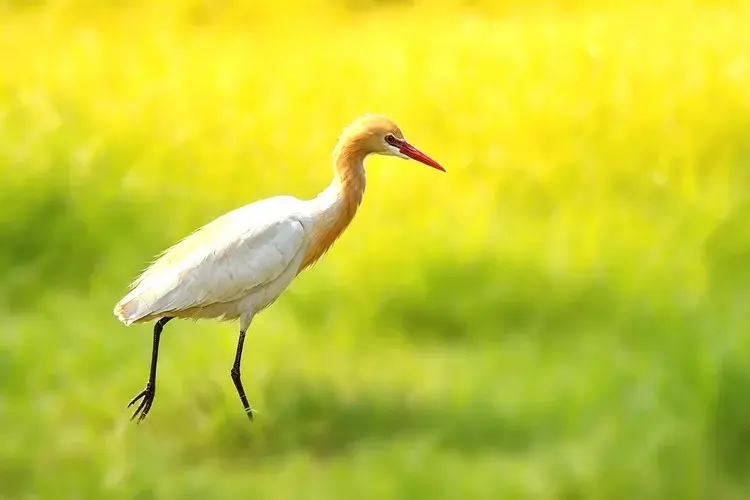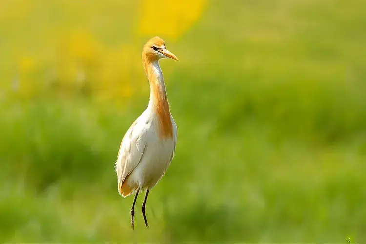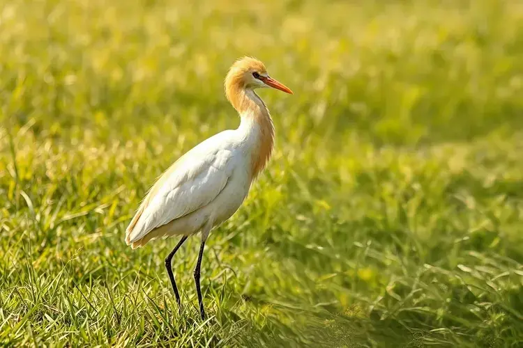 牛背鹭本是鹭科鸟类中颇具特色的存在,平日里非繁殖期的它们,通体雪白如絮,嘴角透着淡淡暖黄,常随家畜身后觅食,朴素得如同田间寻常风景。可一入繁殖季,这群湿地精灵便迎来了颜值巅峰。