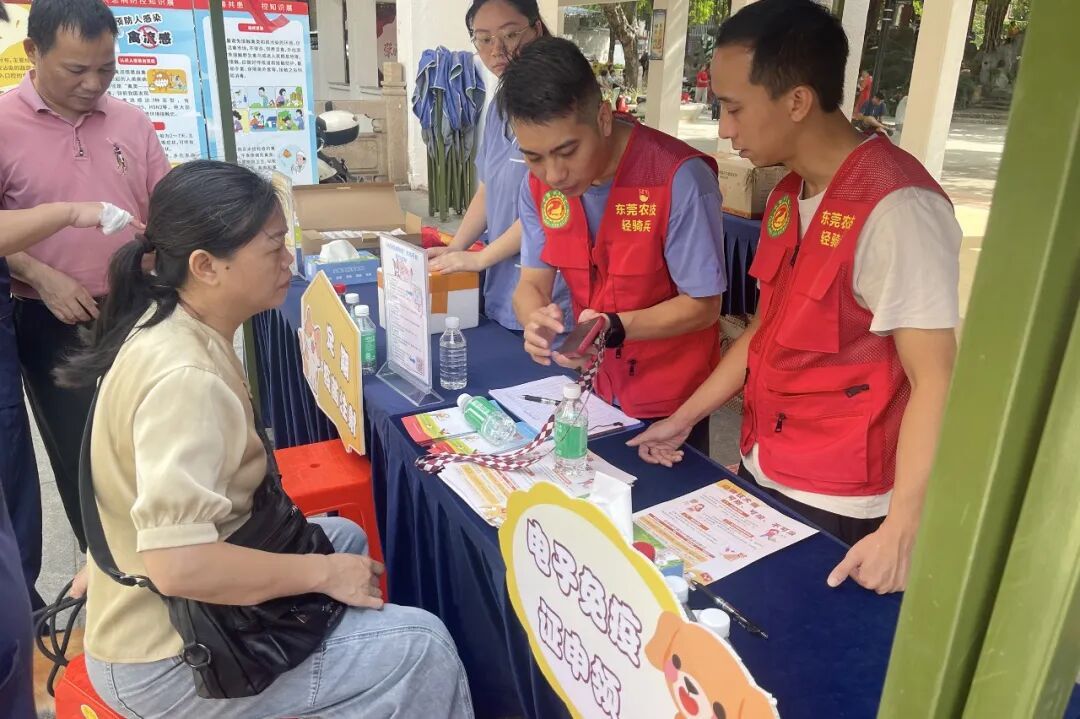 活动现场,石龙公安分局工作人员主动上前引导犬主完成犬只登记备案流程,从源头保障犬只管理的规范性与安全性,为后续防疫工作夯实基础。石龙农技中心工作人员则开启“宣传+指导”双线服务模式。一方面,通过发放动物防疫宣传单页、现场答疑等形式,向市民普及狂犬病、弓形虫病、鹦鹉热等常见人畜共患病的传播途径、危害及日常防护要点,帮助市民建立科学防疫认知;另一方面,工作人员耐心指导市民申领电子免疫证,提升便民服务体验。